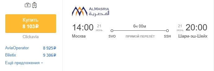 ✈️Москва - Шарм-эль-Шейх (Египет), прямой рейс, с багажом за 8100 рублей