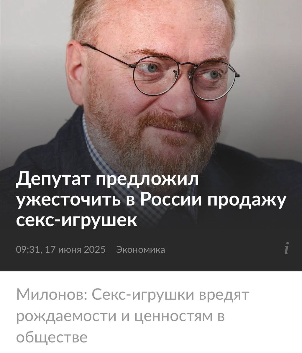 Секс-игрушки по рецепту: Госдума предлагает радикальные ограничения Депутат Виталий Милонов предложил продавать интим-товары только по рецепту врача, назвав их угрозой «нравственности и демографии». Инициатива уже вызвала бурные споры — от поддержки консерваторов до возмущения правозащитников. В чём суть предложения? ✔ Запрет свободной продажи — только в аптеках по рецепту. ✔ Основание — якобы «развращающее влияние» на молодёжь и связь с «падением рождаемости». ✔ Кто сможет выписать рецепт: → Урологи. → Сексологи. → Психиатры (при «диагностированных отклонениях»). Аргументы за и против ✅ Поддерживающие: — «Это защитит традиционные ценности» (Милонов). — «Снизит интерес подростков к интим-товарам». Противники: — «Нарушение прав взрослых людей» (ЛГБТ-активисты). — «Рост подпольного рынка и мошенничества». — «Секс-игрушки не влияют на рождаемость — это миф». Реальная статистика → В России ~300 секс-шопов, оборот — 4 млрд ₽/год. → 67% покуп