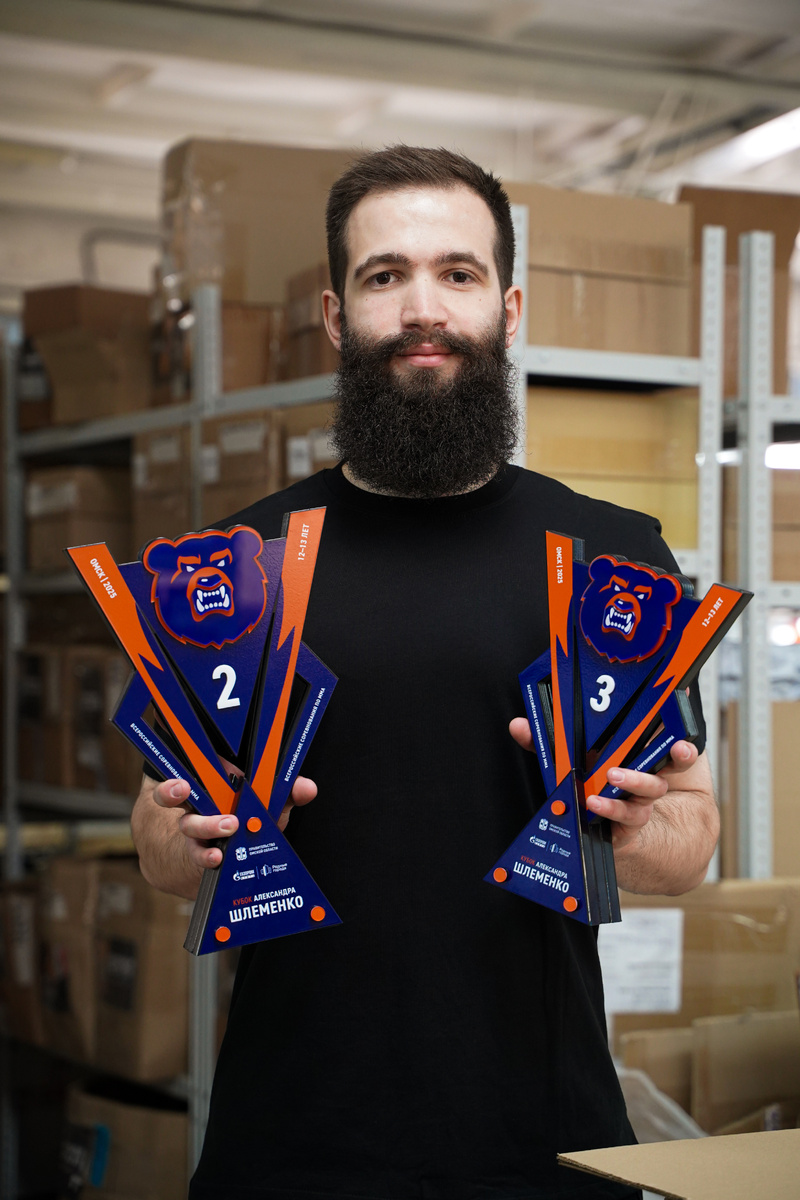 К нам обратились организаторы всероссийского турнира по смешанным единоборствам «Кубка Шлеменко». На соревнованиях традиционно собираются сильнейшие бойцы и названы они в честь выдающегося российского бойца смешанных единоборств Александра Шлеменко! Нам необходимо было за 2 недели разработать по референсам 12 многослойных кубков. Из материалов - дерево, металл и акрил. Мы подобные продукты уже делали - технология налажена, проблема была в транспортировке - важно было упаковать так, чтобы ничего не поцарапалось и не поломалось (хотя вес кубков вышел таким, что сами сломали бы всех). Все доехало отлично и организатор остался доволен! Результат работы на фото!
