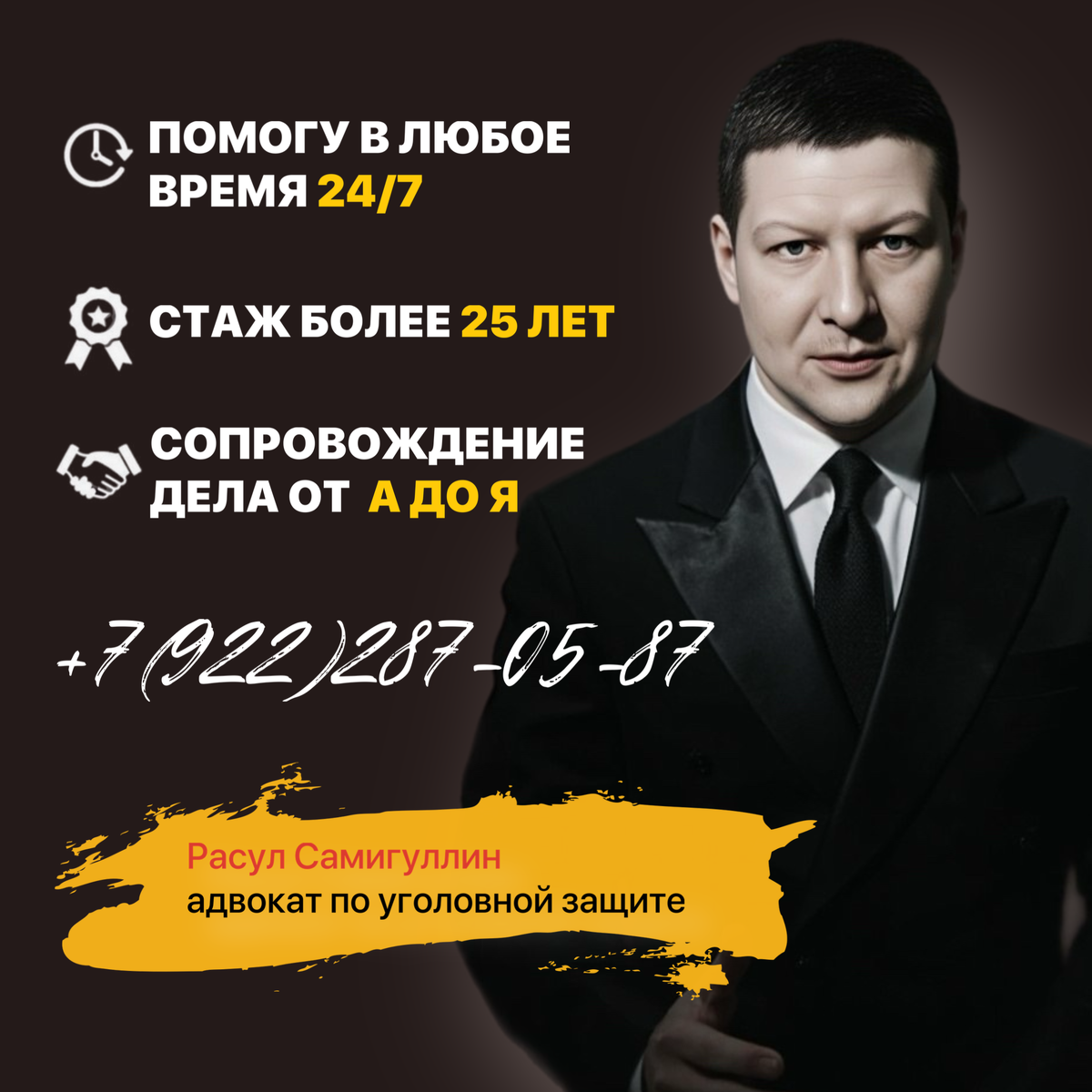Адвокат Самигуллин Расул Фаритович — ваш эксперт по уголовному праву в Ноябрьске. Обеспечиваю квалифицированную защиту прав на всех этапах следствия и суда. Член Адвокатской Палаты ЯНАО. 🔍 Основные направления защиты по уголовным делам: Преступления против личности (ст. 105–125 УК РФ): Защита по делам об убийствах, причинении вреда здоровью (тяжкого, средней тяжести, легкого), угрозах, побоях. Имущественные преступления (ст. 158–168 УК РФ): Защита при обвинениях в краже, грабеже, разбое, мошенничестве, причинении ущерба имуществу. Наркопреступления (ст. 228–234 УК РФ): Защита по делам о хранении, сбыте, изготовлении наркотических средств. Преступления против власти (ст. 285–293 УК РФ): Защита по делам о взяточничестве, злоупотреблении должностными полномочиями. ДТП с тяжкими последствиями (ст. 264 УК РФ): Защита водителей при авариях с причинением тяжкого вреда здоровью или смертью. 💼 Услуги адвоката Самигуллина Р.Ф.: Срочная консультация адвоката по уголовным делам Защита на ст