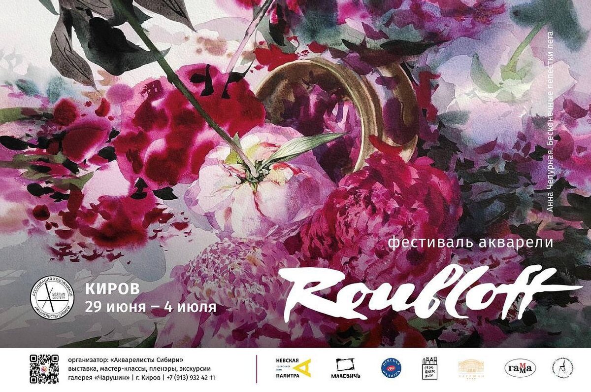 ФЕСТИВАЛЬ АКВАРЕЛИ ROUBLOFF 29 июня - 4 июля | г.Киров 🖌️ В рамках фестиваля состоится выставка акварели художников Ассоциации «Акварелисты Сибири» и приглашенных гостей. 10 участников из 10 городов России и зарубежья | 50 акварельных картин, написанных в разных техниках и жанрах. 🖼️ Выставка торжественно откроется 29 июня в галерее «Чарушин» по адресу: ул. Ленина, 80, г. Киров. 17.00 | акварельная демонстрация Анны Ивановой. 19.00 | торжественное открытие выставки и фестиваля. Вход свободный, без записи и регистрации. 🎨 В программе фестиваля: серия мастер-классов и пленэров под руководством пяти мастеров акварельной живописи; экскурсии по городу, в художественный музей; на производство кистей Roubloff, где каждый гость сможет не только увидеть весь процесс создания, но и собрать собственную кисть! Стоимость участия в программе, расписание и другие подробности фестиваля - https://vk.com/sibclub_art В афише использована акварель Анны Чепурной-Олейник «Бесконечные лепестки лета»