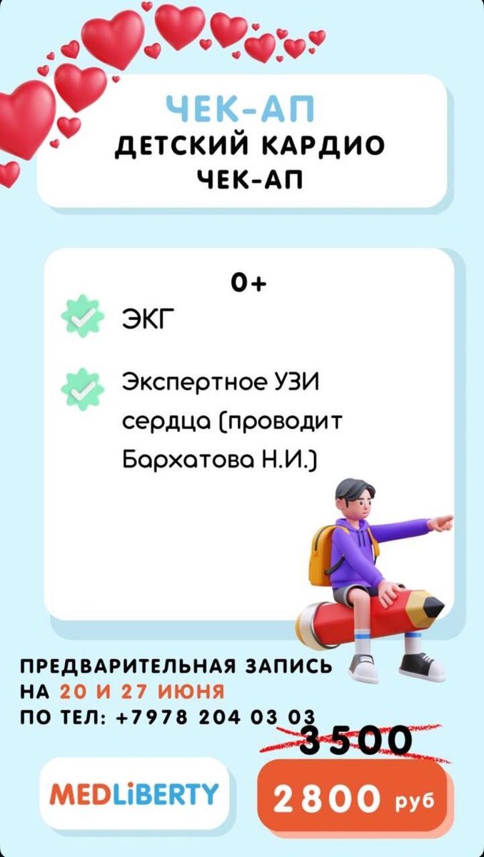 Ведется запись на кардиологический ЧЕК-АП для взрослых и детей по специальной цене к нашему врачу Бархатовой Натальей 🙌🏻