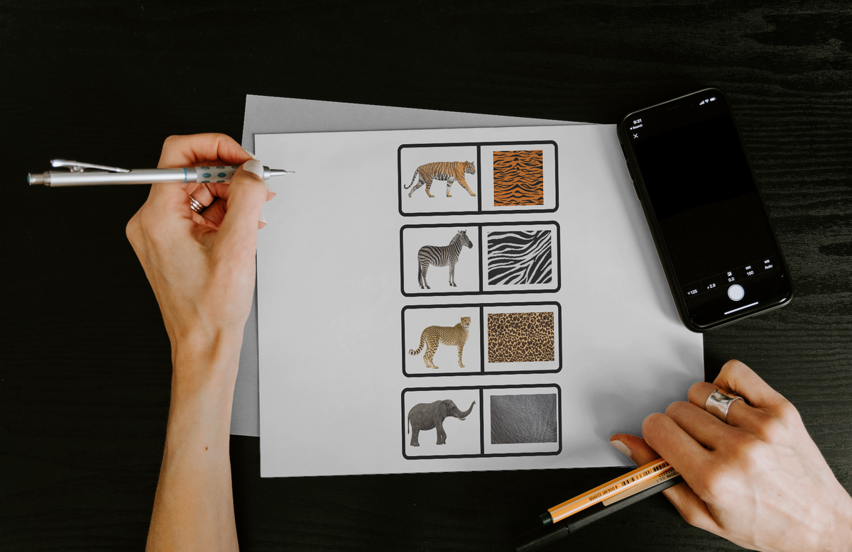 ▶ Подберите к каждому животному его узор ▶ Закройте изображение животного
