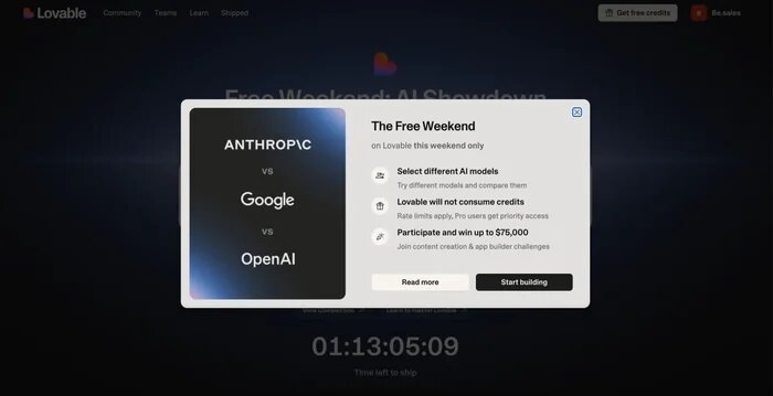 Ура, lovable.dev* в эти выходные можно использовать совершенно бесплатно 🔥🔥 Можно нагенерировать себе сайтов сколько душе угодно) Сделано это для того, чтобы пользователи сами выбрали, что лучше — gpt, claude или gemini То есть классически вызывать lovable (мы не знаем, что там внутри) по-прежнему стоит кредитов, но вот если выбрать одну из конкретных моделей от большой тройки — то это будет стоит 0 usd! Пойдёмте использовать этот подарок) я за claude, а вы?