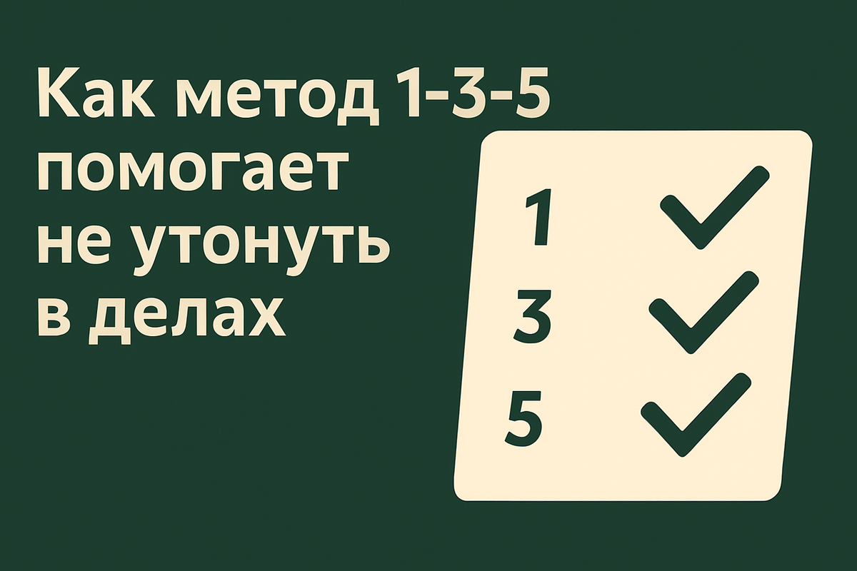 Метод 1-3-5. Простая структура — и, как ни странно, сразу дало результат. Метод предлагает жёстко ограничить задачи на день. Только девять пунктов: Ты не просто пишешь список, а отбираешь задачи. Каждая задача проходит фильтр: почему именно она и почему сегодня? Метод 1-3-5 не для всех. Он не сработает, если: В таких условиях не планируешь и не выбираешь, исходя из приоритета, а реагируешь по факту, пытаясь успеть всё и сразу. Когда начал, заметил, как много дел можно просто не делать. Они не важны. Не срочны. Не мои. Просто пыль. Основное — не обмануть себя. Если ты не сделал главную задачу, то "галочка" напротив задачи из менее важной категории её не компенсирует. Ты структурируешь день? Или идёшь по ситуаци