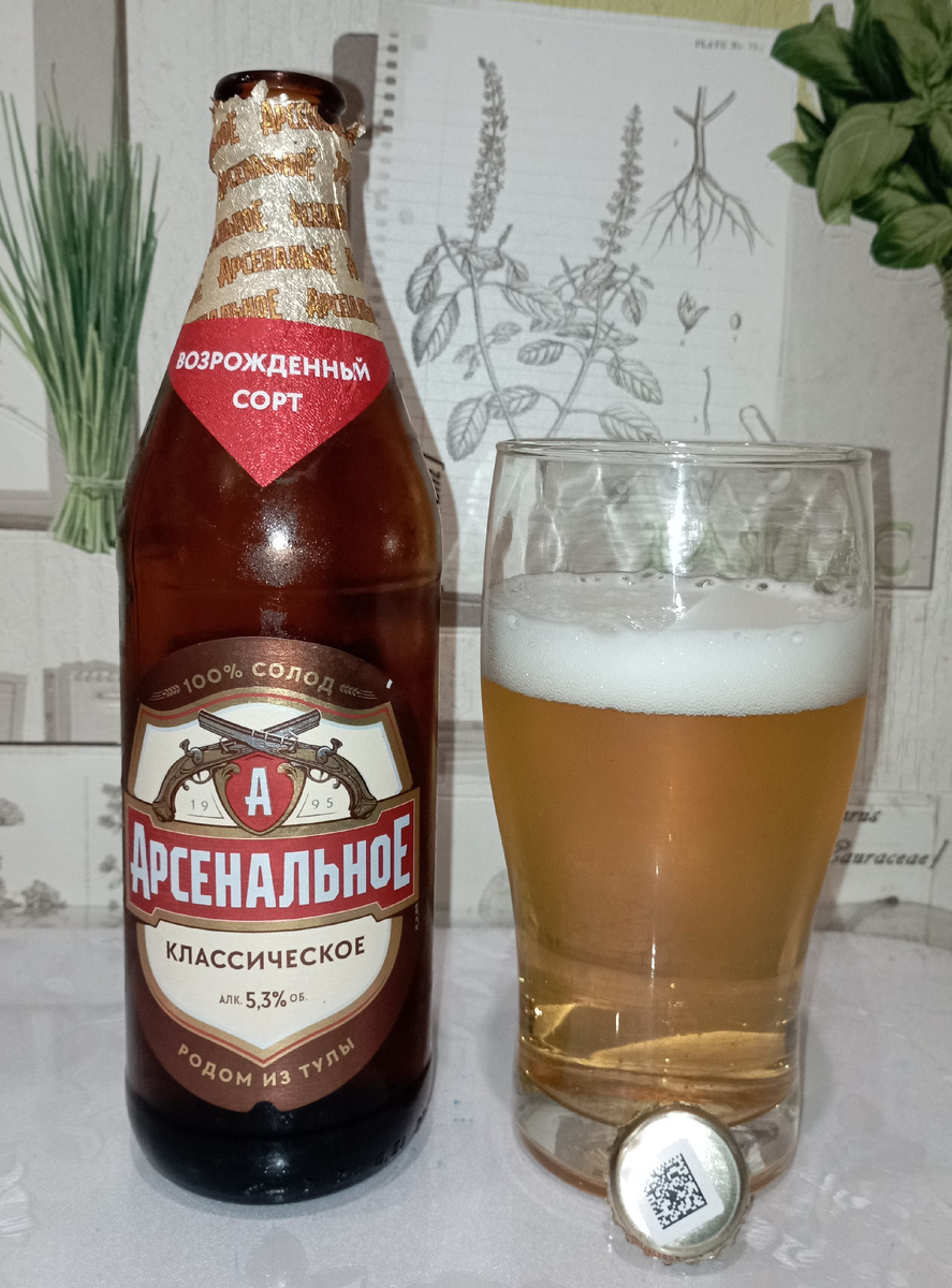 И еще один сорт "Арсенального". Сейчас найти "Арсенальное" в стекле можно только в маленьких несетевых магазинчиках. Про "Ледяное" я уже ранее писал. Теперь очередь "Классического". Помнится, в молодости "Арсенальное" была вариантом выбора тогда, когда рязанское "Жигулевское" надоедало.. Арсенальное Классическое. ЭНС 12.0. Алкоголь 5.3. Производитель "Тульский пивзавод". Тула. Стиль - Lager - Pale Дата производства - 20.11.2024 Дата дегустации - 15.06.2025 Оценка на untappd - 2.63 Объем 0.5л. Пробка - "лысая". (Жаль, что "Балтика" не решила сделать каждому сорту оригинальную пробку, подобно "номерной" серии) Цвет - янтарный. Пенная шапка средних размеров и стойкости. В аромате чуть солода. Во вкусе чуть солода, еле заметная посторонка. Субъективно, пиво достаточно сильно выброжено. Чем-то похоже на нынешнюю "семерку". Мне не зашло. П.С. Отдал за него аж 76 рублей. Субъективная оценка: 2.5 Куплю ли еще: нет. П.П.С. Было бы интересно увидеть возрождение других брендов, например "Ярпиво".