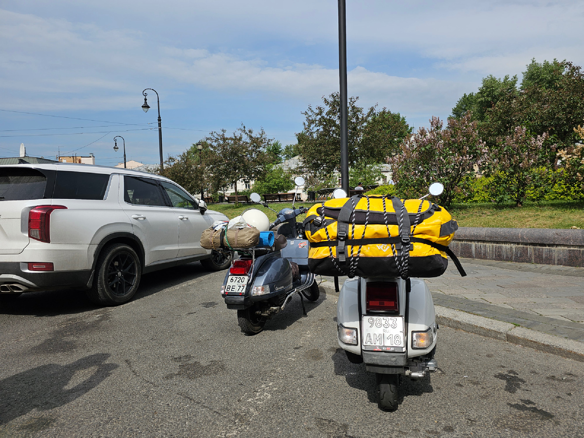 Первый райд 2025 года проходил в формате "Дикарей". За прошедшую зиму произошли некоторые изменения, в частности я приобрел Vespa P200e, но к первому райду он был еще не готов, поэтому я поехал на проверенном PX150.