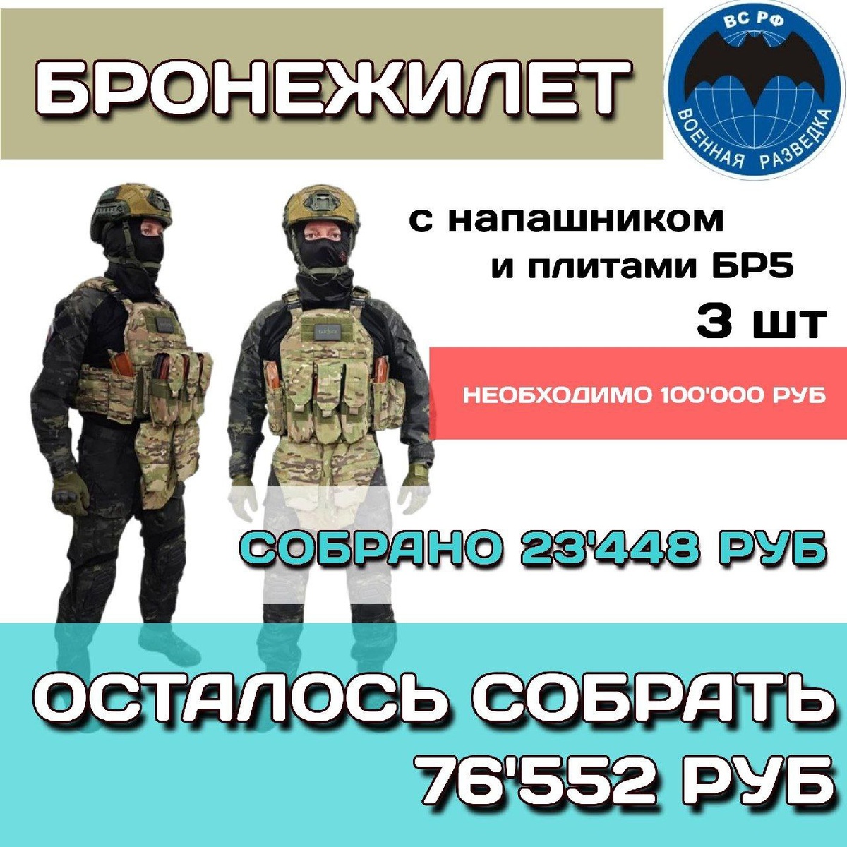 Друзья, добрый вечер. Продолжаем сбор на 🟢БРОНЕЖИЛЕТ (с напашником и плитами БР5) - 3 шт. 📌Сумма к сбору - 100'000 руб. 🔺Собрано - 23'448 руб. 🔺Осталось собрать - 76'552 руб. ❗️Сумма к сбору предварительная - цены на маркетплейсе постоянно меняются 📈! Любую посильную сумму можно перевести на номер карты 💳2202208188194204 или по номеру телефона 📞+79530562233 Получатель - Светлана Владимировна Л. (Сбербанк) #уралсвоихнебросает #вместемысила #работаембратья #победабудетзанами #УралСвоихНеБросает #уУралаНеСвоихНет