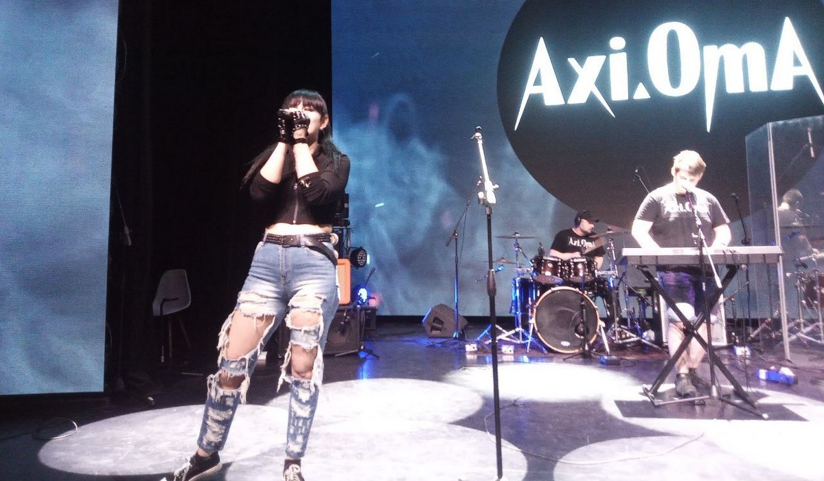 Первыми на сцену «Гелиоса» вышли ребята из Курчатова с несколько замысловатым названием: ВИА «Компромисс» и Aconite. Следуя объяснению ведущего, Aconite – это автор-исполнитель Екатерина Киселёва, а ВИА «Компромисс» – аккомпанирующая ей инструментальная группа.