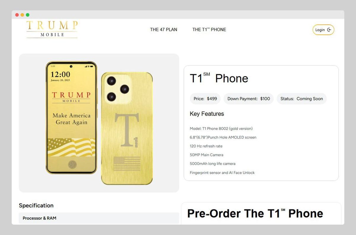 Трамп выходит на рынок гаджетов: представлен смартфон Trump Mobile T1, собранный «исключительно в США