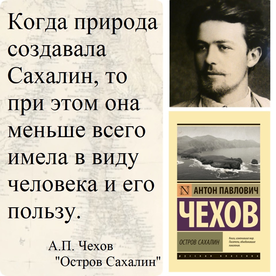 "Налево видны в тумане сахалинские мысы, направо тоже мысы… а кругом ни одной живой души, ни птицы, ни мухи, и кажется непонятным, для кого здесь ревут волны, кто их слушает здесь по ночам, что им нужно и, наконец, для кого они будут реветь, когда я уйду. Тут, на берегу, овладевают не мысли, а именно думы; жутко и в то же время хочется без конца стоять, смотреть на однообразное движение волн и слушать их грозный рев".