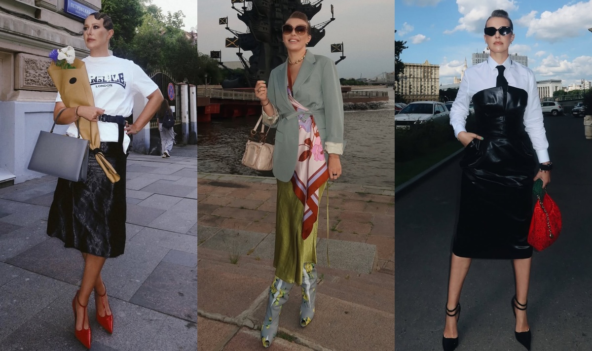 В новом сезоне стиль Ксении Собчак перестал быть просто гардеробом. Это уже полноценный визуальный язык, в котором стилисты Миша и Китти создают сложные, многослойные образы. Здесь нет случайных вещей — только точные пропорции, сложные фактуры, архитектура силуэта и почти математическая точность в деталях. За последний месяц появилось шесть образов, которые показывают, как интеллектуальная мода работает в реальности. Первый образ строится на асимметричном топе от Phoebe Philo. Его скульптурная конструкция сразу задаёт ритм всему комплекту. Поддерживают эту линию прямые брюки от Livy Studio — строгие, вытянутые, они балансируют объем верха и визуально вытягивают силуэт. Яркий акцент даёт клатч от Prada — алый цвет добавляет драматизма, но не разрушает общую сдержанность. Завершают образ серьги Alexander Arutyunov и лаконичные туфли Ferragamo, которые собирают весь комплект в единую архитектурную конструкцию. Здесь отлично работает разность фактур: плотная ткань верха, гладкость брюк,