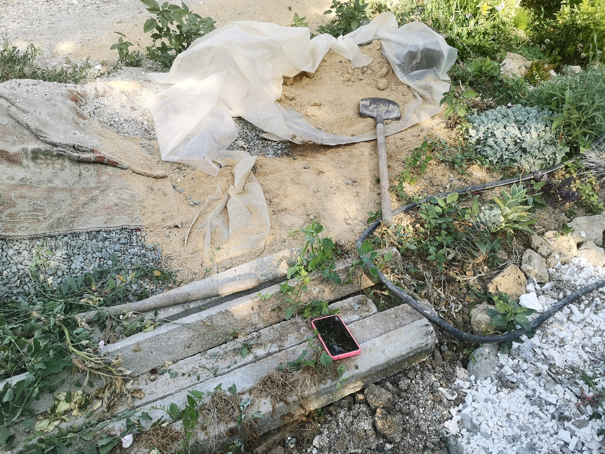 Готовила я статью про самые простейшие цветы которые меня поразили, только в обеденный перерыв подбивала информацию про свои розы аж с двух своих телефонов да так, что оба сели))) Кинулась фото к статье вечерней сделать - а нечем! Пришлось идти копать. В прямом смысле слова, не все ж цветочки нюхать. Издеваться над собой я ещё вчера начала. У меня же пристройку сделали наконец, место там, где лежала ракушка, освободилось, а у меня тырса и песок рассыпаны на неприлично большой территории, слишком далеко песчинка от песчинки. Непорядок. И решила я этот непорядок до ума довести Это было вчера. Жёлтая - тырса, носила я её сюда Жёлтая кучка за ракушкой А потом мне показалось, что я не устала и сформировала серую кучу песка Наверное, можно было подождать пока строители выработают, но мне ж надо было землю освободить ещё вчера, зато домой заползала. Хорошо, что есть палочка-выручалочка - упражнения ЛФК. Спина сегодня казала спасибо, а вот мышцы на руках прошипели, что я дура. Зато сегодня по