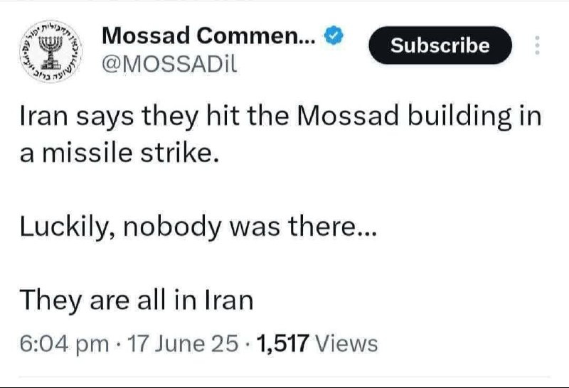 Комментарий Моссад на заявление Тегерана об обстреле здания Моссад: