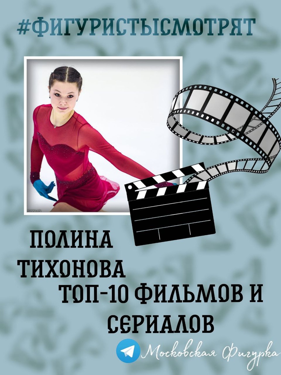 Всем привет! Сегодня в рубрике Фигуристы Смотрят приняла участие чудесная Полина Тихонова! Недавно спортсменка перешла в танцы на льду, будет выступать с Матвеем Лысовым. Начнём с топа-10 любимых фильмов! 1. Иллюзия обмана 2. Голодные игры 3. Убийство в восточном экспрессе 4. Смерть на ниле 5. 1+1 7. Веном 8. Люди в чёрном 9. Сердце чемпиона 10. Сумерки Сериалы: 1. Игра престолов 2. Шерлок (Бенедикт Камбербэтч) 3. Доктор Хаус 4. Бедные смеются, богатые плачут 5. Хороший доктор 6. Чужие деньги 7. Уэнздей 8. Локи 9. Острые козырьки 10. Гарри Поттер (но это не сериал) Большое спасибо Полине за участие! Увидимся в следующей рубрике!