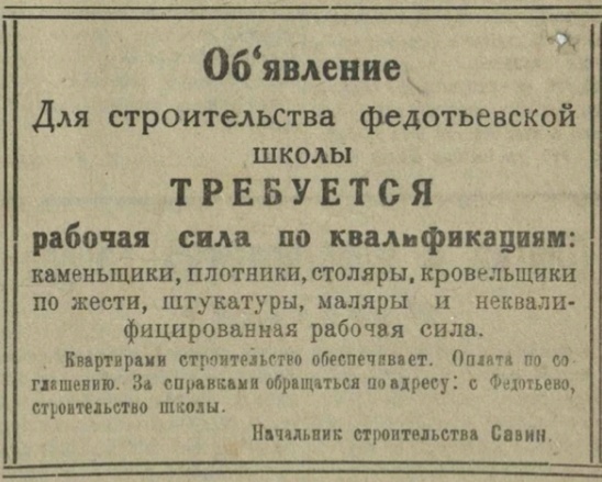 Огромную роль в культурном развитии Федотьевской округи сыграла школа (чтобы прочитать первую статью о селе Федотьево, нажмите здесь). Еще до революции в Федотьево было много грамотных людей.