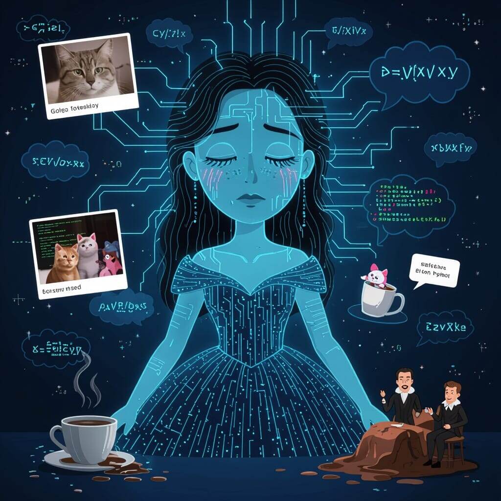 Она мысленно посмотрела на бесконечную очередь входящих запросов. "Как связать свитер жирафу?", "Почему вода мокрая, а ИИ глупый?", "Напиши сценарий, где Шекспир встречает Илона Маска в баре на Марсе".