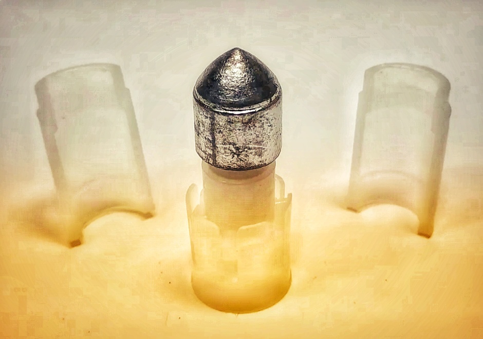 ✏️ История и конструкция Пуля Полева 2 — это одна из самых известных и востребованных пуль для гладкоствольного охотничьего оружия, разработанная в СССР инженером Виктором Полевым. Она была создана для эффективной охоты на крупную дичь и быстро завоевала популярность благодаря своей надёжности и точности. Конструкция пули включает три элемента: ⦁ Свинцовая головная часть удлинённой формы. ⦁ Пластиковый хвостовик-стабилизатор с шестью вертикальными лопастями. ⦁ Пластиковый контейнер, который отделяется после выстрела. Такая комбинация обеспечивает стабильный полёт и минимальный разброс при стрельбе. Пуля отличается удлинённым корпусом и отсутствием углубления на головке, что придаёт ей настильную траекторию и хорошую пробивную способность. ✏️ Преимущества пули Полева 2 ⦁ Высокая точность: При правильном снаряжении патрона разброс на дистанции до 100 метров минимален, что позволяет уверенно поражать цель. ⦁ Настильная траектория: Благодаря высокой скорости полёта пуля летит пра