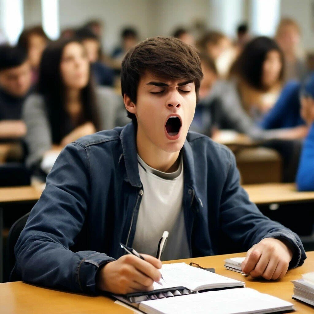 В университете шла сессия, и студенты нервничали. Но больше всех переживал профессор Иванов — он вёл самый странный предмет во всём вузе: «Теорию и практику зевания». — Сегодня, — объявил он, — экзамен будет практическим. Вы должны зевнуть так, чтобы я поставил вам «отлично». Студенты переглянулись. — Это что, шутка? — спросил Коля, парень с третьей парты. — Нет, — серьёзно ответил профессор. — Зевание — это наука! Оно заразительно, полезно для мозга и даже помогает в социализации. Первой вызвали Аню. Она нервно зевнула — тихо, как мышка. — Два балла, — вздохнул профессор. — Это не зевок, а намёк на зевок. Следующим был Витя. Он размахнулся, как оперный певец, и выдал громкое: «Уаааах!» — Четыре балла! — оценил профессор. — Громкость есть, но нет души. Тогда вперёд вышел Петя — местный мастер по сну. Он медленно потянулся, зевнул на три октавы, добавил слезу в уголке глаза и закончил довольным «М-м-м…» — Пять баллов! — воскликнул профессор. — Это был шедевр! Но тут с последн