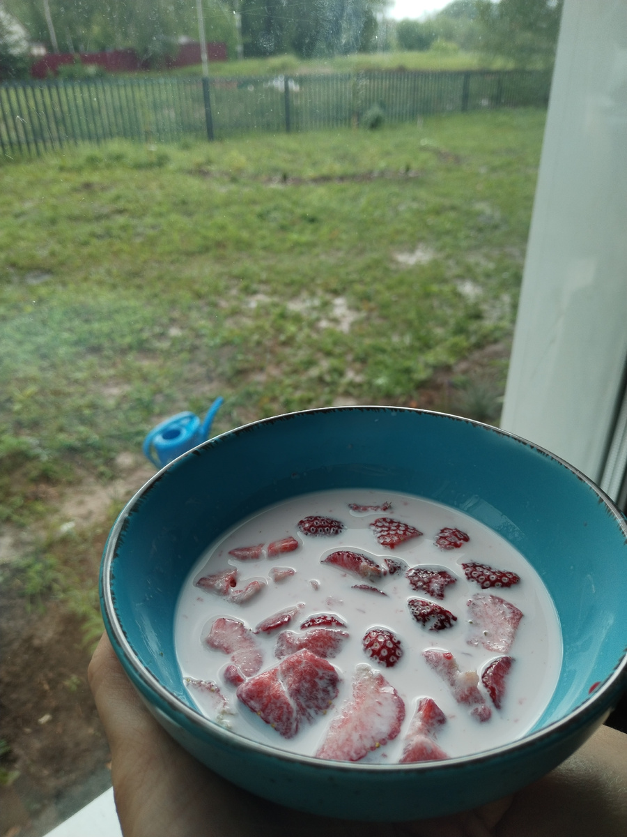 Я на даче вот уже 6 дней. Впервые так долго! И большую часть времени тут льет, как из ведра, в сад удается выскочить на полчаса, чтоб покопаться в вязкой глине. То ещё удовольствие , глина липнет к тяпке, к перчаткам, к калошам и, кажется , к самой душе. И становится нудно, и морочно, и не получается сделать то, что намечено. Однако делается другое. 1. Например, хорошо поедается клубника. С 20-процентными сливками, обожаю, вкус детства, когда сливки были деревенские и собирались желтоватой прослойкой по верху трехлитровой тучной банки с молоком. Не знаю, как у вас, но у нас в "Пятерочку" завезли невменяемо вкусную клубнику, я радуюсь. Что ещё делать? 2. Пялиться в окно, одной и с котом. У меня это отлично получается, я, можно сказать , мастерица. Ну и кот не отстаёт. Смотрим на пионы. Не пересорт, ура, та самая Сара Бернар, дали по цветочку два из пяти! 3. Собственно , срезать пионы и нюхать их в вазе! Все равно от дождей они все "мордой в грязь". 4. Мастерить. Что угодно, все, до ч