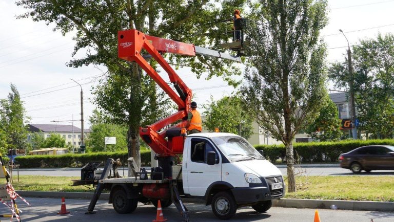 Работы идут каждый день по графику и продолжатся в дальнейшем. В обрезке участвует спецтехника: ломовоз, погрузчик и автогидроподъёмник.