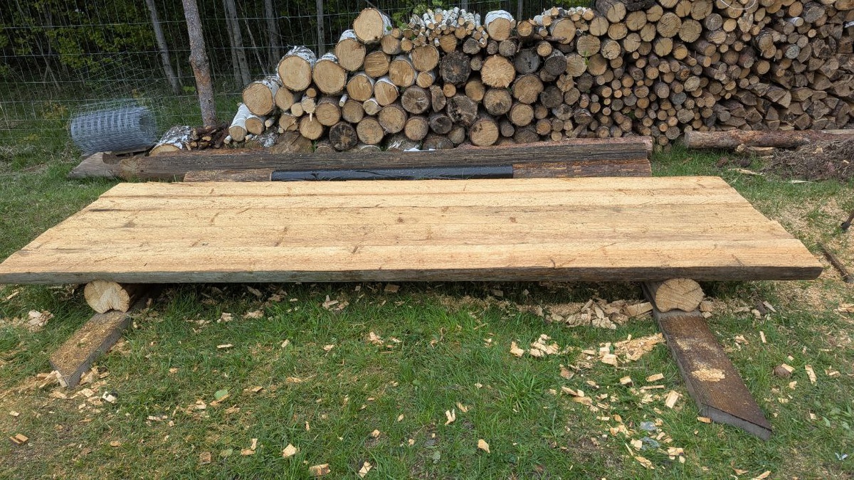 Ещё немного вам в ленту нашего будущего уличного стола дорогие подписчики. Вырисовывается столешница. Сделал выпилы под стойки и убрал зазоры между бревен. Теперь нужно будет собрать полностью стойки, потом все отшлифовать. Обработать от гнили и собрать.
