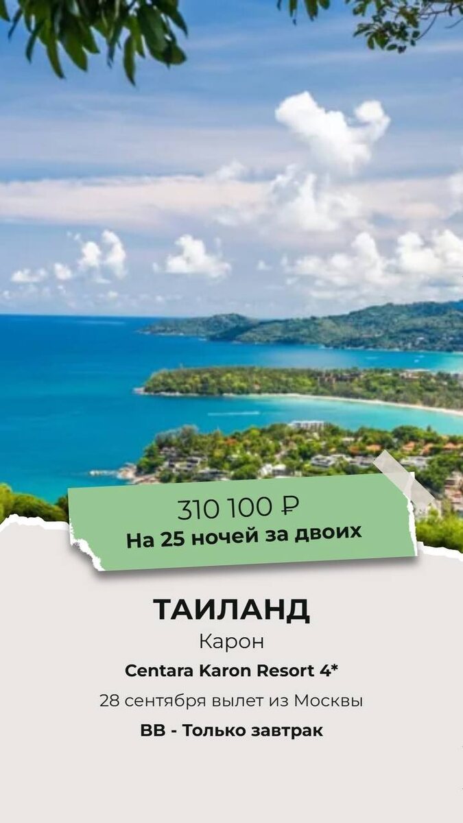 Приветствую, путешественник👋 Еще одно спецпредложение почти на месяц в Таиланд (цена с перелетом для двоих) 🇹🇭 Могут быть нюансы по погоде, но если вы хотите сменить картинку и полететь на долго, то почему бы и да 😀 Полностью обновленный современный отель на пляже Карон, в 400м от моря. Рядом отлично развита инфраструктура, большой выбор кафе, ресторанов, магазинов. Заявки принимаются 📱https://wa.me/79259267726 📱https://wa.me/79166877467 Ваш 😍❤️ Тревел Эксперт Лариса Комарова Мои соц. сети 📱https://dzen.ru/id/67d6b88fa1eb2e3478ff34f8 📱 https://dzen.ru/id/67d6b88fa1eb2e3478ff34f8 📱 https://vk.com/easytravel_komarova Запрещенка 📱 https://www.instagram.com/l.komarova1?igsh=aWdkc3VuZH
