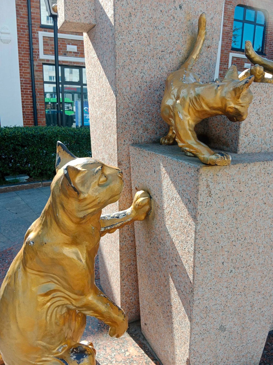 Сквер сибирских кошек. Появился в Тюмени в 2008 году. 12 разнохарактерных кошек и котят заняты своими кошачьими делами и не обращают внимания на жителей города и туристов.