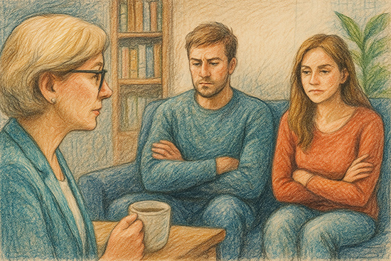 Психолог Анна Петровна посмотрела на пару, сидящую напротив неё в кабинете. Марк и Елена были вместе пять лет, но сейчас напряжение между ними можно было резать ножом.