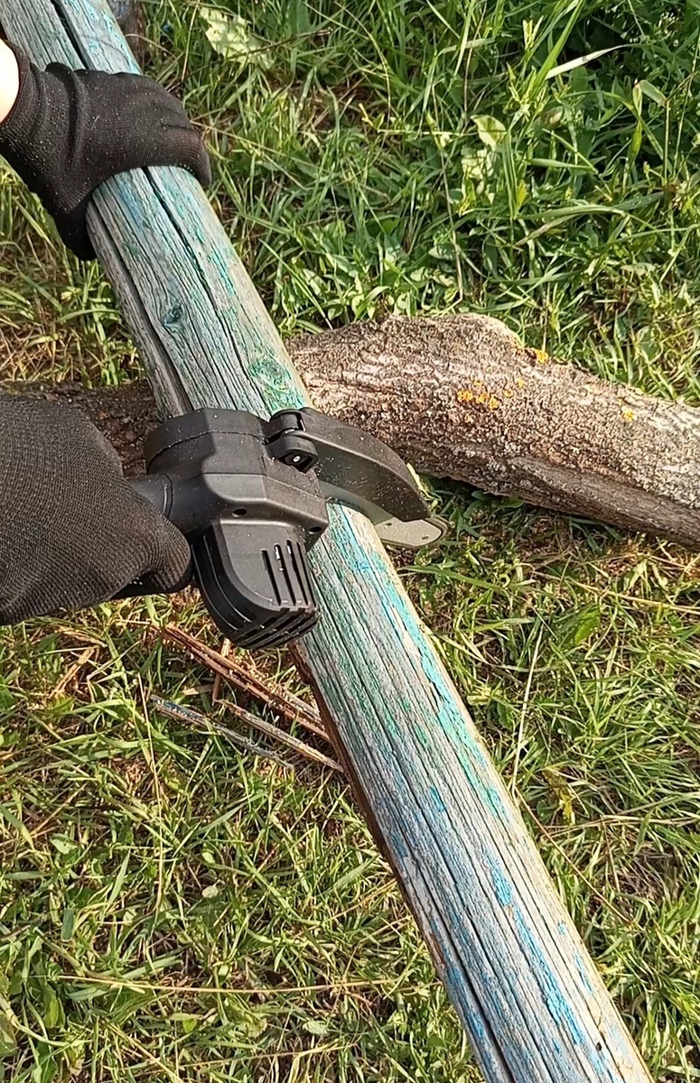 Руку я набивала при подготовке дров для бани. Справилась быстро и страх перед жужжащим инструментом ушел. Руки от процесса тоже не устали. Про спину понятно – нагрузки нет. Дальше начался азарт и я заодно убрала зараженные монилиозом ветки вишен. До того как-то руки не доходили, да и секатором щелкать их совсем иначе.