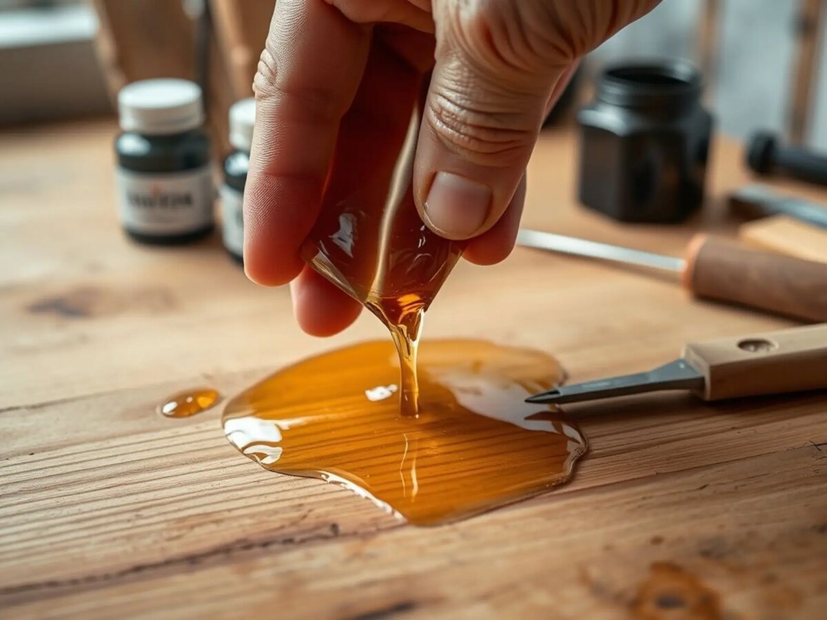 Первый раз я сделал классическую ошибку – купил смолу для ювелирных работ. Она дорогая и слишком жидкая для глубоких заливок! Берите составы с пометкой «для столярных работ». К слову, запаситесь перчатками – смесь липнет ужасно.