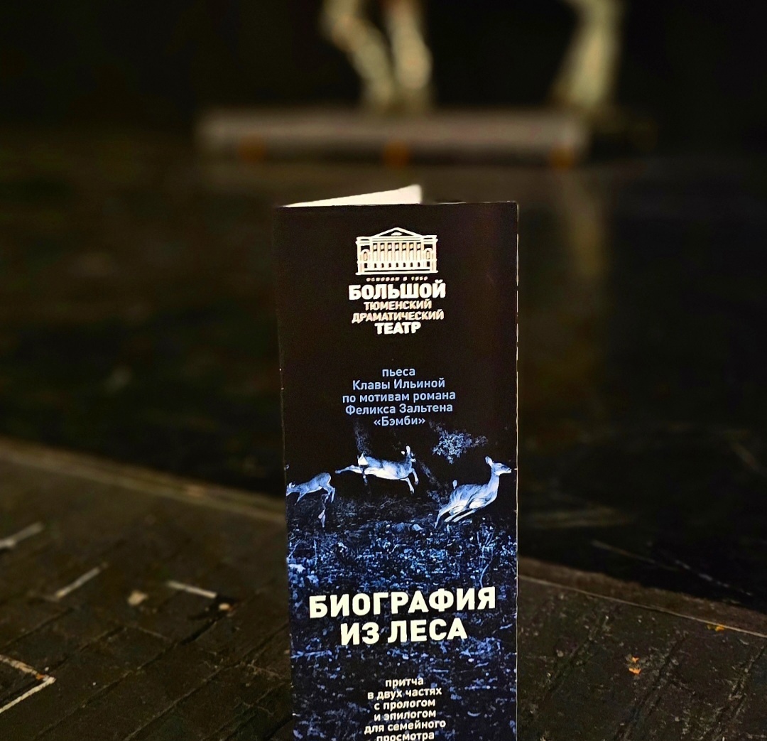 С репертуаром Тюменского БДТ я немного знаком! Сначала ребята привозили свой премиальный мюзикл «Семейка Адамс» (шикарен!) на фестиваль «Другие берега». Потом были обменные гастроли с Красным факелом ("Тартюф" сильнее всего зацепил). Потом я летом ездил на родную сцену театра, смотрел прекрасного «Ричарда III». Поэтому когда выпала возможность посмотреть ещё один спектакль ребят, «Биографию из леса» 16+, я не упустил этот шанс. Первые минуты с кадрами из фильма Ларса фон Триера: «Антихрист» 18+, «Меланхолия» 18+ настраивали жесть. Но жести не случается. Первое действие — довольно концептуальное, неспешное, рассказывающее о рождении главного героя в Лесу, собственно оленёнка Бэмби, которому предстоит очень быстро повзрослеть и обрести мудрость (в центре сюжета пьеса Клавы Ильиной по мотивам романа Феликса Зальтена "Бэмби"). Обретение как раз и будет ждать нас во втором действии, которое, к сожалению, оказывается далеко не лаконичным, да и не особо жестким (помним, триеровское начало). И