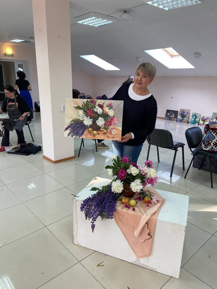 В этом году с 13-15 июня прошел уже 10й по счету и уже всероссийский пленэр художников-любителей. Пятница- традиционно натюрморт, ибо по традиции почти всегда дождь. Суббота - выездной пейзаж, воскресенье по идее, городской пейзаж. Короче, я ничего не успела. Ибо по маслу я точно художник-любитель и рисую им раз в год. Состояние - словно раз в год садишься на шпагат 😂, только размялся, вот только начало что-то … только пошло, - время убирать краски. Короче, вот мой позор. Ну что делать, будем дописывать в мастерской.
