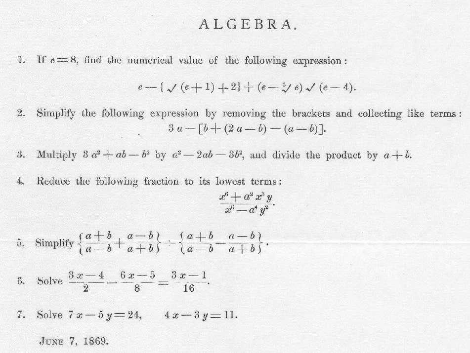 Вступительные задачки по алгебре в Массачусетский технологический институт 150 лет назад. Сейчас такие любой аккуратный 9-классник осилит