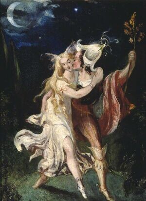- Фантастическая традиция британской литературы (поэтические произведения Эдмунд Спенсера «Королева фей» и Александра Поупа «Похищение локона») в сочетании с инновациями в сфере театральной техники — пьесы Уильяма Шекспира «Сон в летнюю ночь» и «Буря», теперь шли на сцене в условиях газового освещения и электричества, что позволяло разработать необычные эффекты, вдохновлявшие художников. В 1863 году спектакль с участием Эллен Терри представил зрителям Титанию верхом на механическом грибе[2].