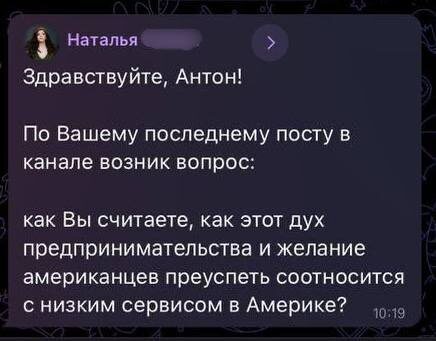 Включил функцию отправки сообщений прямо в телеграм-канал, и первое же сообщение вызвало у меня много мыслей. Вопрос прикрепляю выше — по-моему, отличная тема для поста. Это действительно интересный парадокс, почему в Америке такой плохой сервис при условии духа предпринимательства. Однажды я обсуждал это со своим американским другом Питером. Он говорил, что иммигранты из стран СНГ могут неправильно воспринимать американский сервис, сравнивая его со своим родным, потому что не учитывают разницу в ценообразовании и уровне доходов. Если говорить о ценах, в Калифорнии обычный обед в кафе за $30 примерно соответствует средней оплате одного часа работы местного жителя (средняя почасовая зарплата в штате сейчас около $35). В России за эквивалентную сумму (примерно 2500 рублей на июнь 2025) можно неплохо поесть в хорошем ресторане, но важно учитывать, что средняя почасовая оплата труда в России — около 300 рублей. Поэтому сравнивать напрямую уровень заведений и сервиса так нельзя. Если пре
