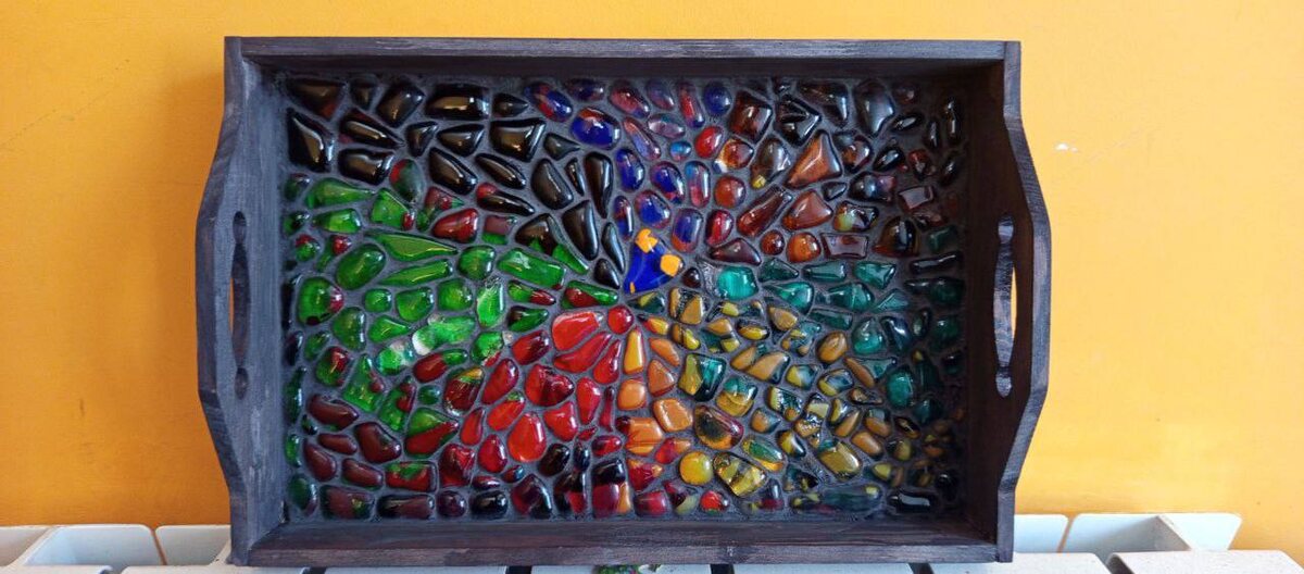 В нашей мастерской фьюзинга за время работы накопилось много остатков стекла. А ещё — изделий, которые испортились, пока выпекались в печи. Выбрасывать всё это нам не хотелось, и тут появилась идея — использовать эти материалы для мозаики.