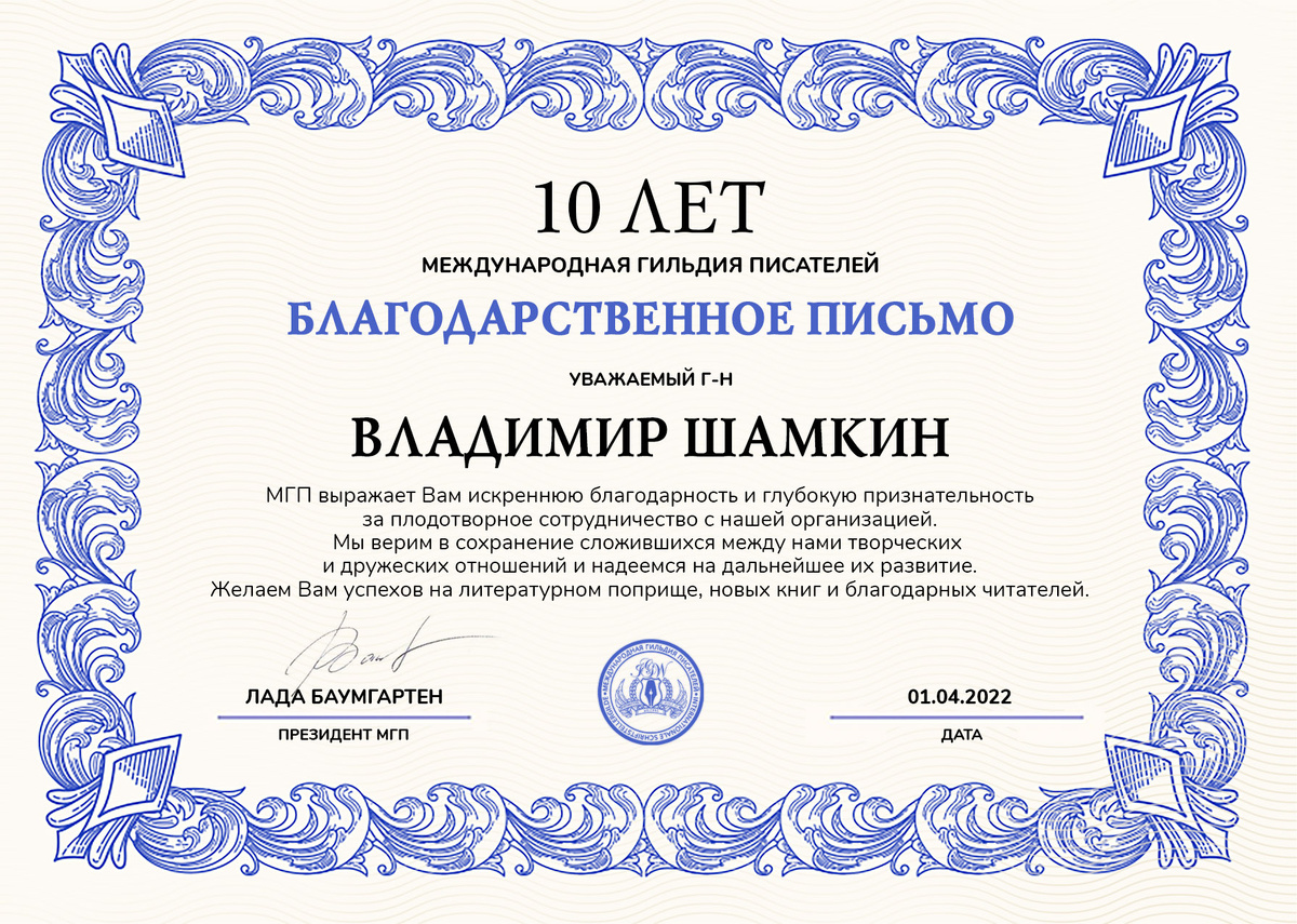 благодарственное письмо