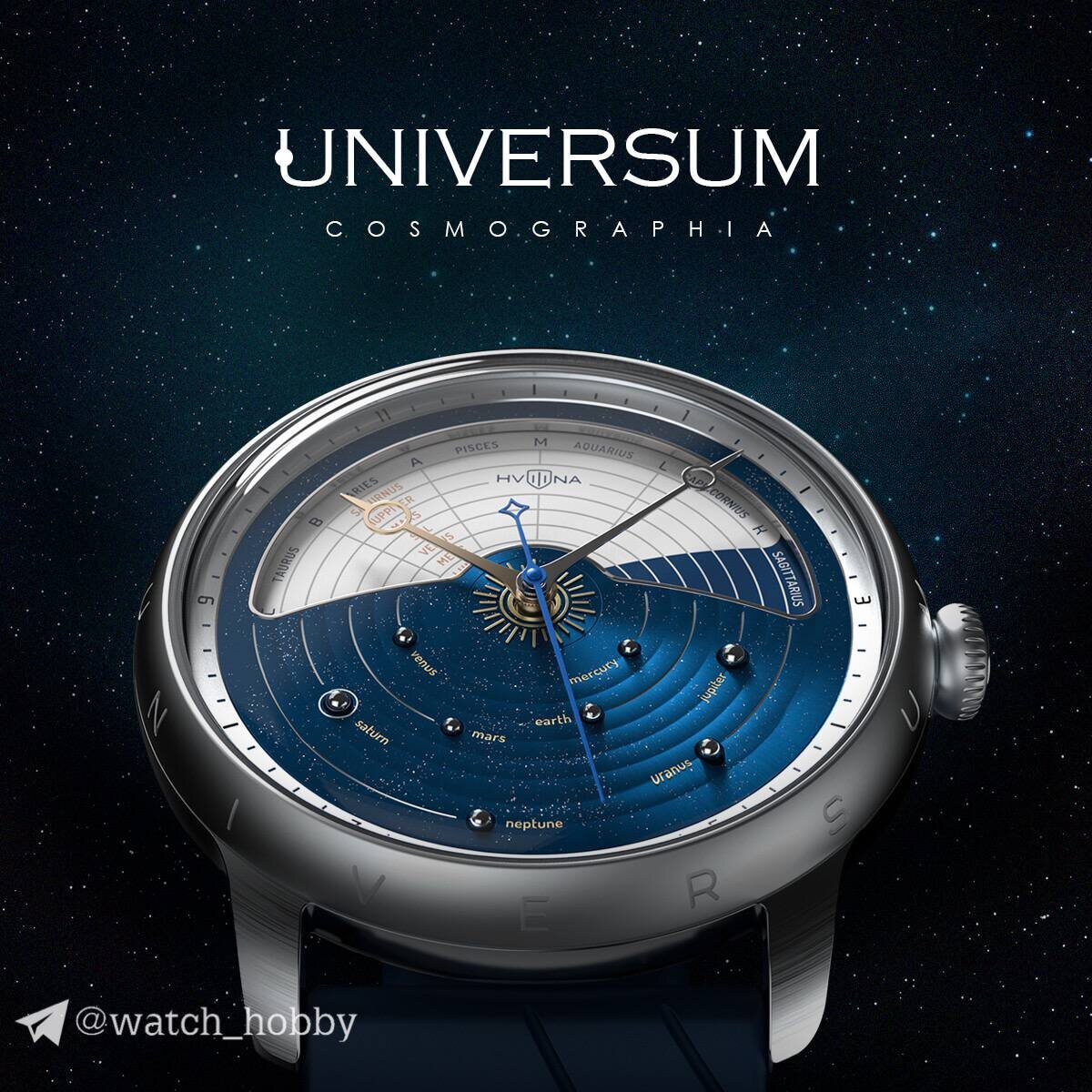 Hvilina Universum Cosmographia - лимитированная новинка, вдохновленная астрономическими атласами и устройством Вселенной. Всего представлено 4 вариации модели, каждая хороша по-своему и призвана попасть во вкус каждого из нас. По мне - вариация в синем корпусе. Хотя космос - это про черный, конечно. На многоуровневом циферблате часов буквально расположилась Солнечная система, точнее - ее 3D модель. Здесь и планеты, и Солнце, и звезды. Все это находится в нижней части, а вот в верхней - GMT диск с латинскими названиями планет и созвездий. День и ночь разделены цветом. Корпус выполнен из стали, его диаметр составляет 42.6 мм. С обеих сторон сапфир. Рант вокруг стекла украшен наименованием бренда и модели. За работу часов отвечает калибр Miyota 9075 с запасом хода в 42 часа. Ротор также украсили под тему космоса, звезды и планеты. Выпуск ограничен, будет выпущено по 500 экземпляров каждого исполнения. Стоимость часов составляет 37.000 рублей 💰, но это «вотпрямщас» по предзаказу. Да