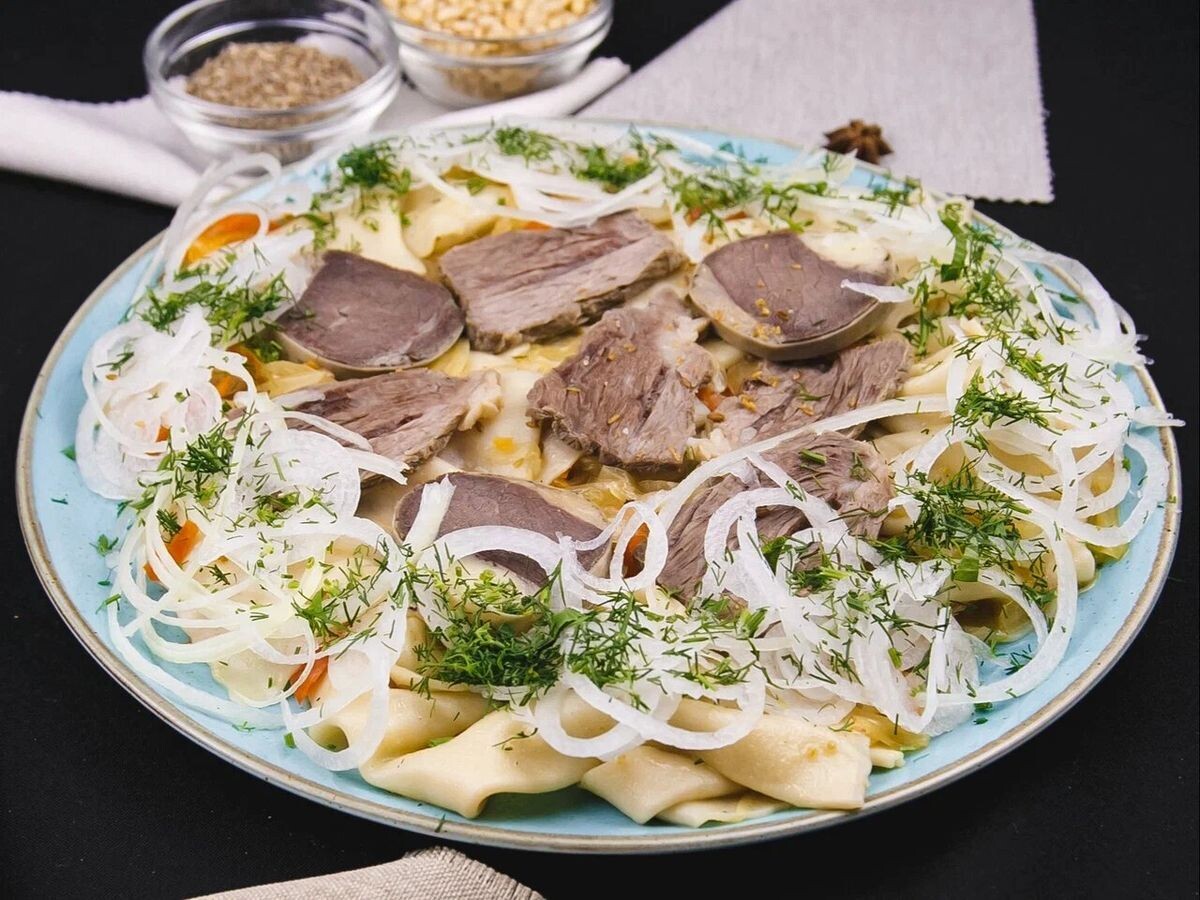 Одним из самых узнаваемых и почитаемых блюд региона является бешбармак. Это традиционное мясное блюдо готовится из вареного мяса — чаще всего баранины, говядины или конины — тонко нарезанное и подается с отварной лапшой и большим количеством лука. В переводе с тюркских языков бешбармак означает «пять пальцев», что указывает на способ его поедания руками. Бешбармак считается блюдом гостеприимства и обычно подается на семейных праздниках и торжествах, символизируя единение и дружбу. Наряду с бешбармаком, в Оренбургском крае широко распространены лепешки "кустык-карта" — тонкие пресн