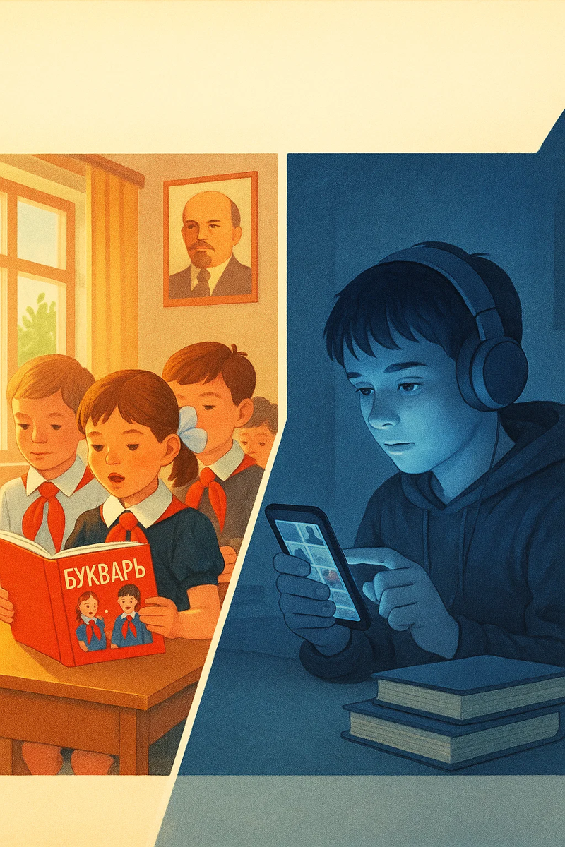 Библиотека при каждом ДК, журналы «Мурзилка», радиопередачи «Круг чтения», читательские дневники на лето. Книга была дефицитом — и именно поэтому предметом гордости: кто прочёл «Чиполлино» первым, тот герой двора. Конкуренция со скроллинг-культуро