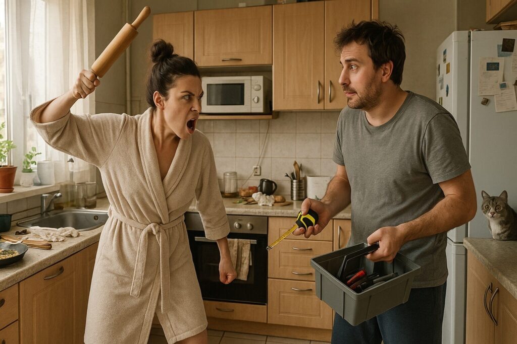 — Серёга, ты дурак или прикидываешься? — жена стояла посреди кухни в позе разъярённой богини возмездия, размахивая скалкой. — Какой, к чёртовой матери, ремонт своими силами?!
