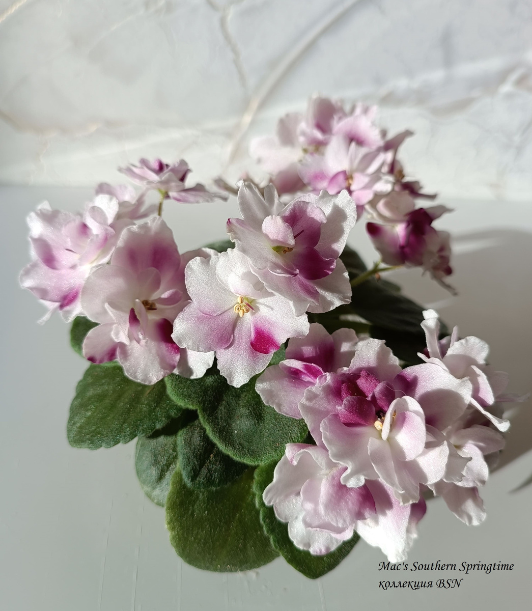 У этой фиалки очень крупная розетка, и чем больше горшок, тем больше розетка, при этом размер цветка остается неизменным, и если на маленькой, молодой розетке цветы кажутся довольно крупными, то на взрослой розетке уже не то...