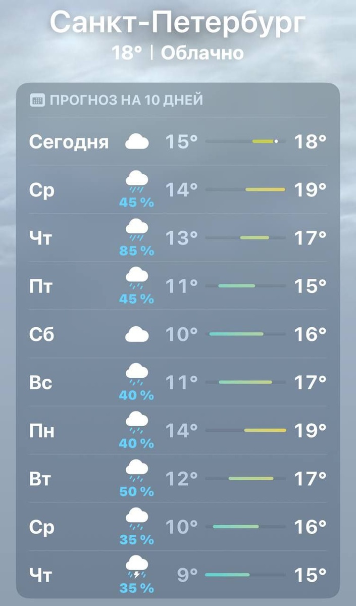В Питере дождь будет идти непрерывно на протяжении почти 8 дней, — прогноз.
