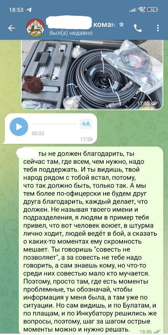 Не называю его имени и подразделения, голос его тоже на телефонной программе видоизменил, т.к. с одной стороны хотелось бы рассказать о Герое подробно и открыто, но в первую очередь думаешь о том, что близкие могут не знать, что он в настолько опасной обстановке, к тому же общение всё же личное и как-то правильно всё же оставить его инкогнито. Его и на канале нет, полагаю, что не до того ему.
