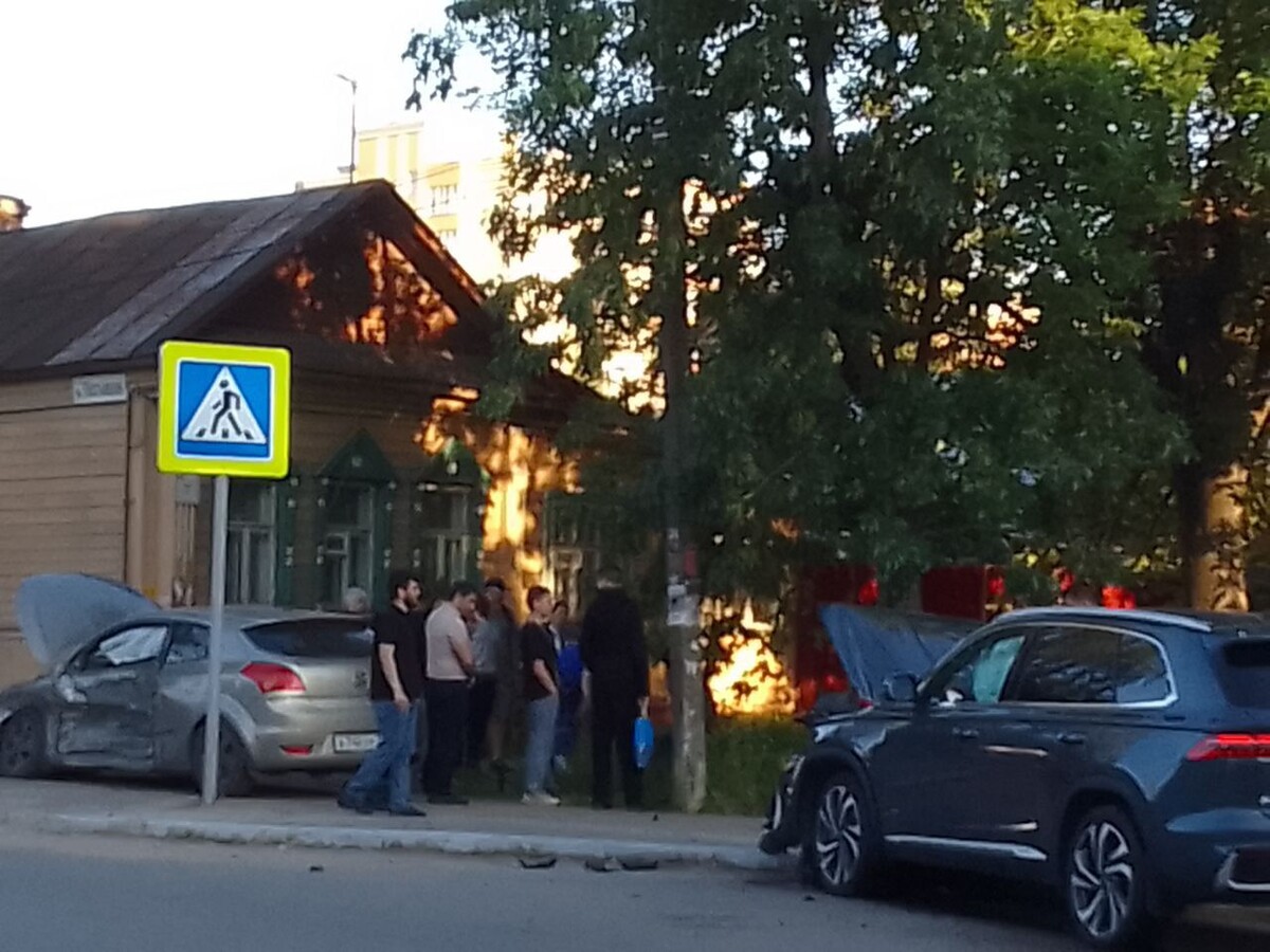 ДТП на перекрестке Московской и Маяковского. Один из автомобилей вылетел на тротуар. Подробности выясняем