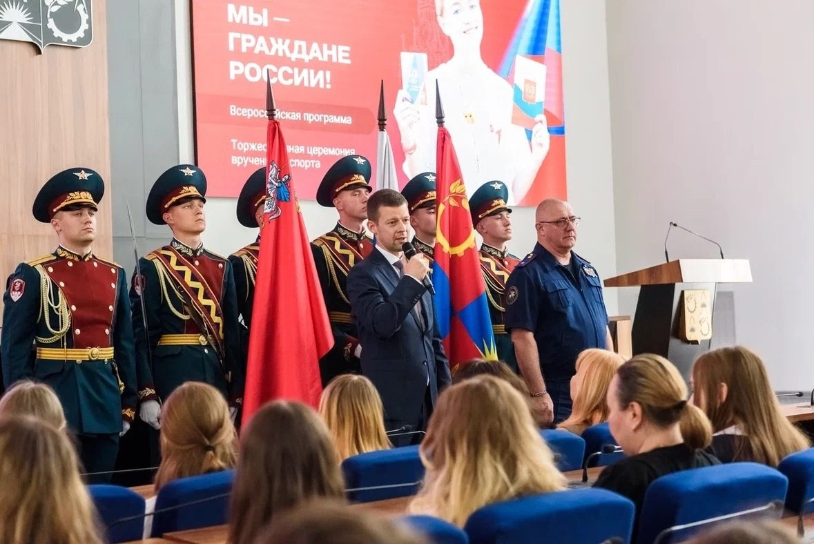 Глава Балашихи Сергей Юров и Герой России Сергей Петров приняли участие в церемонии вручения паспортов юным балашихинцам ко Дню России