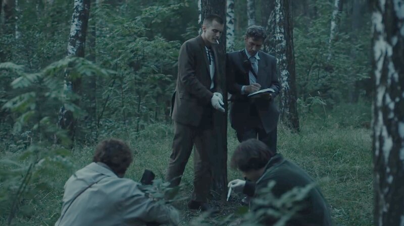 Далее зрителя снова переносят в лес, где через оцепление милиции пытается прорваться обезумевшая от горя мать убитого.