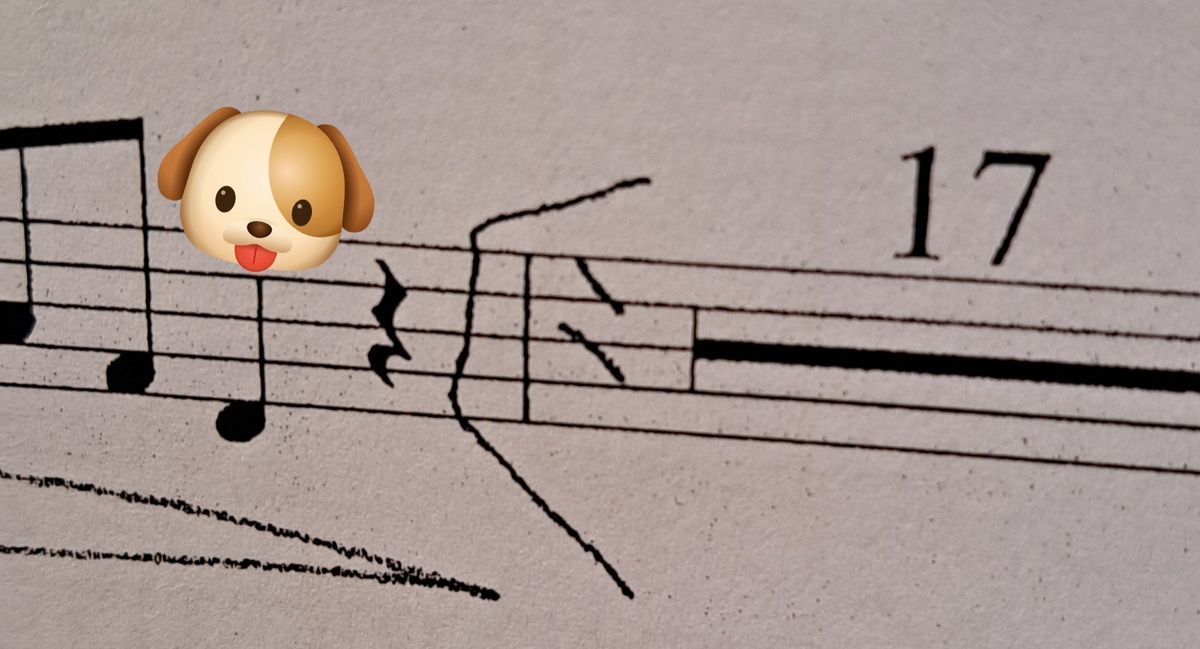 В нотной грамоте и музыкальной записи "собакой" иногда называют знак репризы (повтора) – ‖: ... :‖ или 𝄆 ... 𝄇, который указывает на повторение части произведения. Во-первых, есть некое визуальное сходство – если представить знак репризы ‖: как торчащие уши собаки (как у немецкой овчарки, например 🐺), то можно уловить ассоциацию. Во-вторых, это - "кусающий" повтор – музыка возвращается назад, как та собака, бегающая по кругу. Пример в нотах: ‖: До – Ре – Ми :‖ Это значит, что последовательность До–Ре–Ми нужно сыграть дважды. Из разговора музыкантов: - "Сыграй от собаки до собаки" = повтори от открывающей репризы до закрывающей. - "Этот куплет под собаками" = часть, которая играется дважды. Забавно, да? 😄 Важно! Это неофициальное название, его используют в профессиональном сленге. Но в учебниках по теории музыки такой знак называется "реприза" или "знак повтора". А ещё реприза — это лучший друг ленивого (и не только) музыканта! Разберём по пунктам такую "др