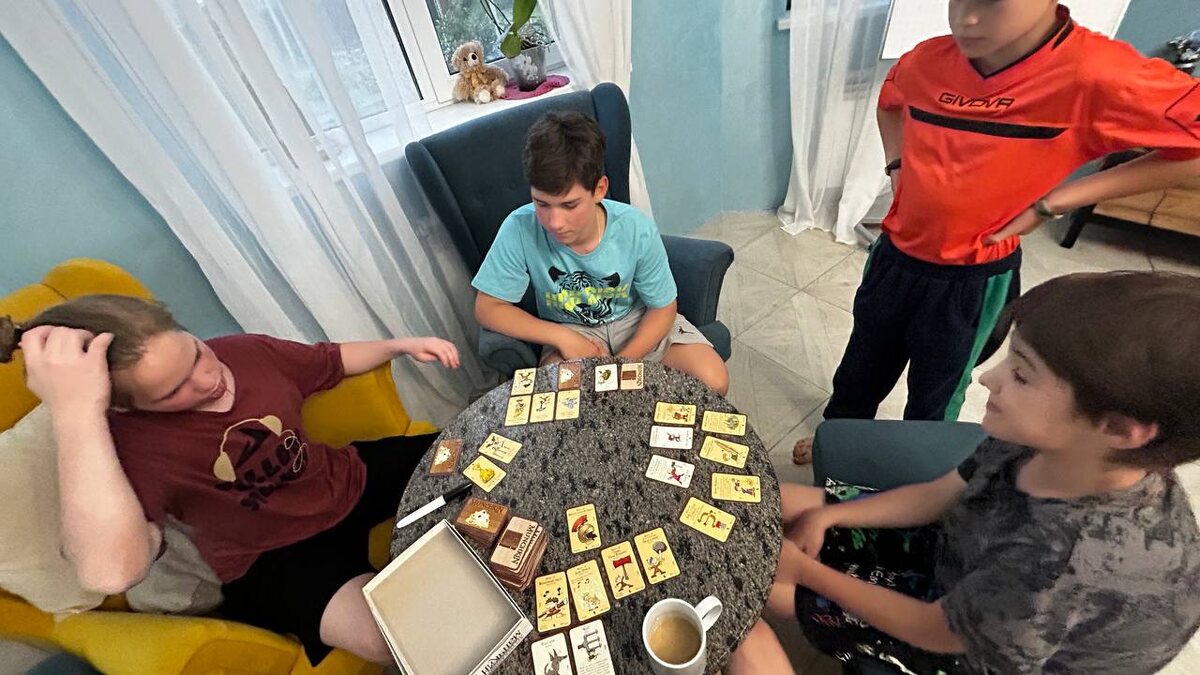 А сейчас пока дежурные наводят порядок на кухне, мы сели учиться играть в новую игру